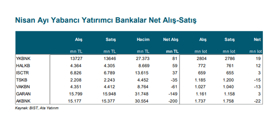 Diğer altını çizdiğimiz bir konu ise raporun sonunda bulunan, sadece bankaları sıraladığımız tablodur. Burada yabancıların bankalara genel bakışı veya aralarında nette alış veya satışı hangilerinde yaptığını göstermekteyiz.